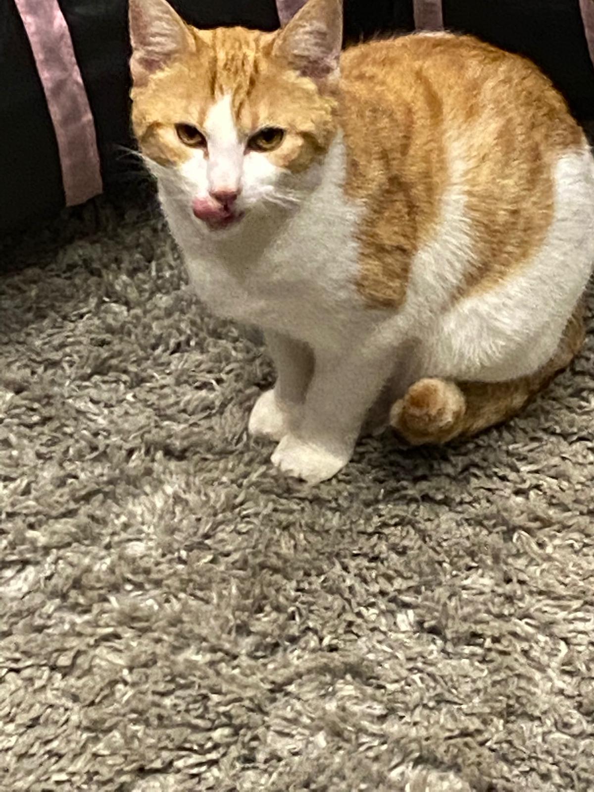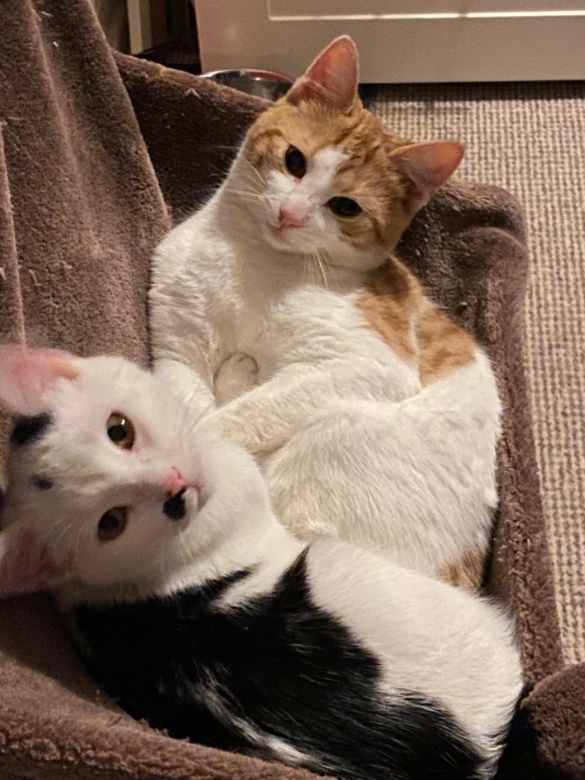 Clyde seit 2023 in der Pflegestelle, bester Kumpel von Pünktchen, sehr sozialer Kater und sehr verliebt in seine Pflegemama.